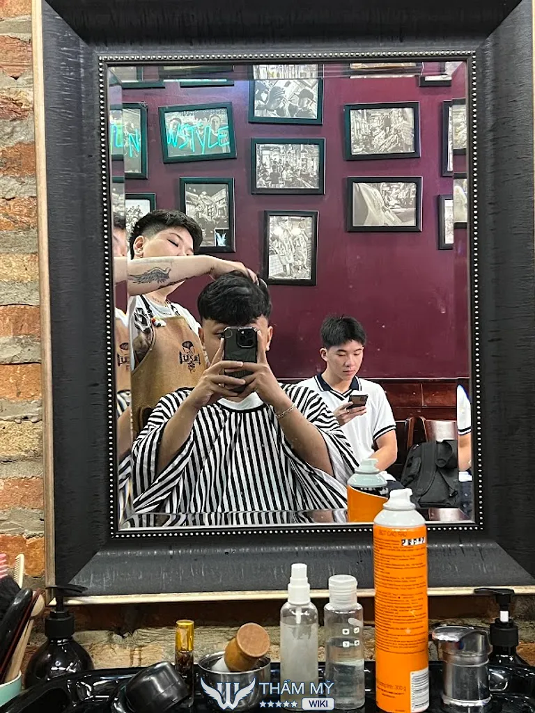 - Không khí: “Vibe” ở đây là thứ khó tìm thấy ở nơi khác. Tiếng tông đơ ro ro hòa lẫn với những bản nhạc Rap/Hip-hop rộn ràng khiến không khí luôn tràn đầy năng lượng. Mùi hương đặc trưng của tiệm là sự pha trộn giữa mùi Cologne nam tính, mùi Pomade (sáp vuốt tóc) gốc dầu và một chút hương “bụi bặm” của đàn ông.