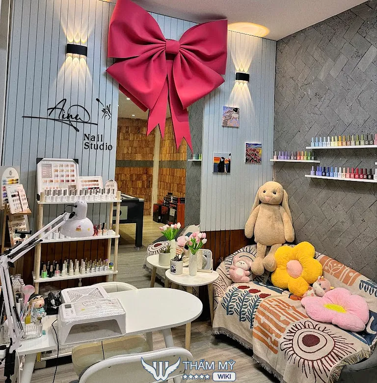 Ngay từ khi bước vào Aine Nail Studio, bạn sẽ cảm nhận được một không gian đầy ấm cúng và dễ chịu. Những chiếc gối xinh xắn, chiếc sofa vải thêu hoa cùng với các chú thú bông đáng yêu tạo nên không gian như một căn phòng nhỏ, nơi bạn có thể thư giãn tuyệt vời.