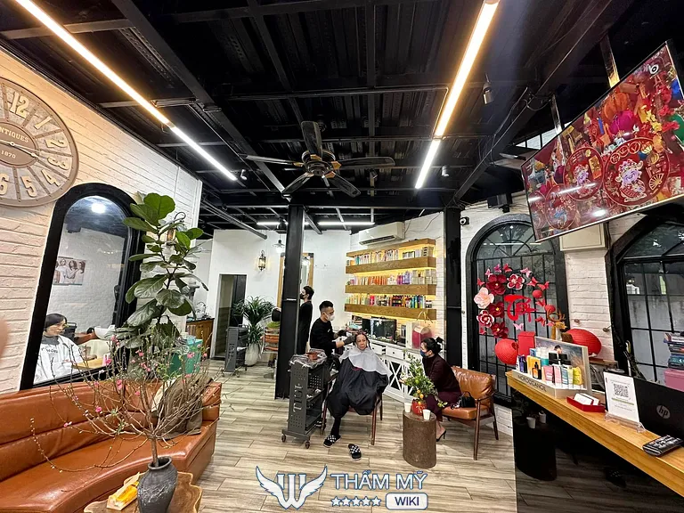 Salon không theo phong cách sang trọng kiểu “showroom”, nhưng đảm bảo sạch sẽ – thoải mái – đủ riêng tư, đúng tinh thần một salon tóc phục vụ khách hàng lâu dài.