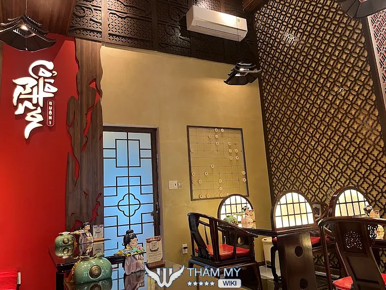 Bước vào bên trong, cảm giác đầu tiên ập đến là mùi hương. Đó không phải là mùi tinh dầu sả chanh công nghiệp nồng nặc, mà là mùi thảo mộc thoang thoảng, mùi của sự “an yên” như chính lời giới thiệu của họ. Không gian nội thất sử dụng nhiều gỗ tự nhiên, trần nhà cao thoáng đãng với các chi tiết trang trí như lồng đèn vải, tranh thủy mặc mô phỏng núi non hùng vĩ, và những bộ bàn ghế gỗ kiểu cổ. Tất cả tạo nên một sự tĩnh lặng, tách biệt hoàn toàn với thế giới bên ngoài. Đây chính là cái “gu” mà khách hàng phân khúc cao cấp đang tìm kiếm.